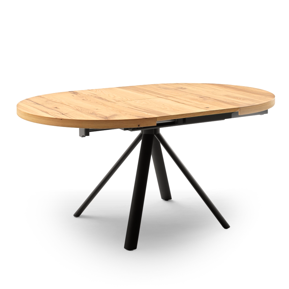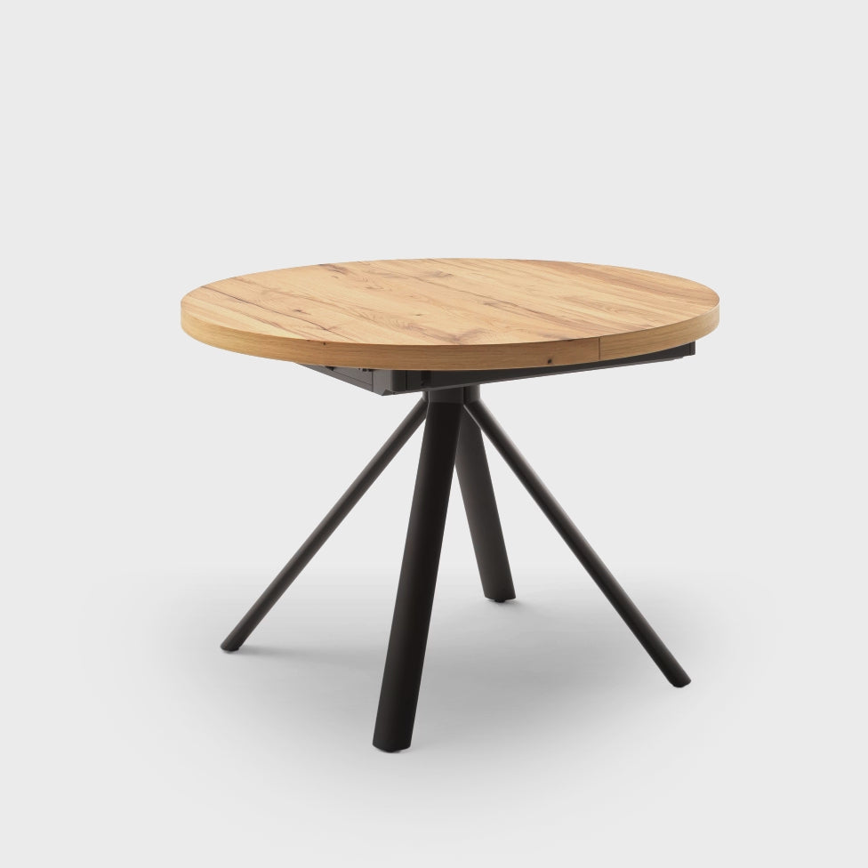 Discover the Kano dining table part of the thoughtfully designed Klein & Fein collection by Venjakob. Created especially for compact spaces without compromising on style or comfort. Perfect for modern family homes, the Kano features a sleek round top in your choice of real wood veneer or melamine decor, paired with a striking cross-leg base. Despite its smaller footprint, it offers big functionality with an extending leaf option, making it ideal for everyday dining and entertaining alike. Smart, stylish, and space-conscious.