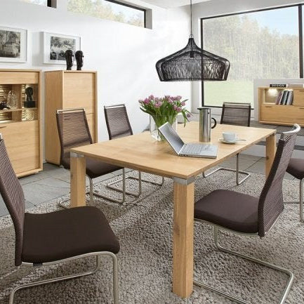 The Venjakob Multiflex Extending Dining Table is a contemporary design with a Solid or Solid wood veneer top and 3 attractive leg designs. It comes in 3 different widths, 80cm, 90cm and 100cm, and from 120cm to 220cm in 10cm increments in length with the option of either being fixed, 65cm extension or with a 100cm extension. Along with the option of 8 different wood finishes the Venjakob Multiflex can adapt to any dining area.