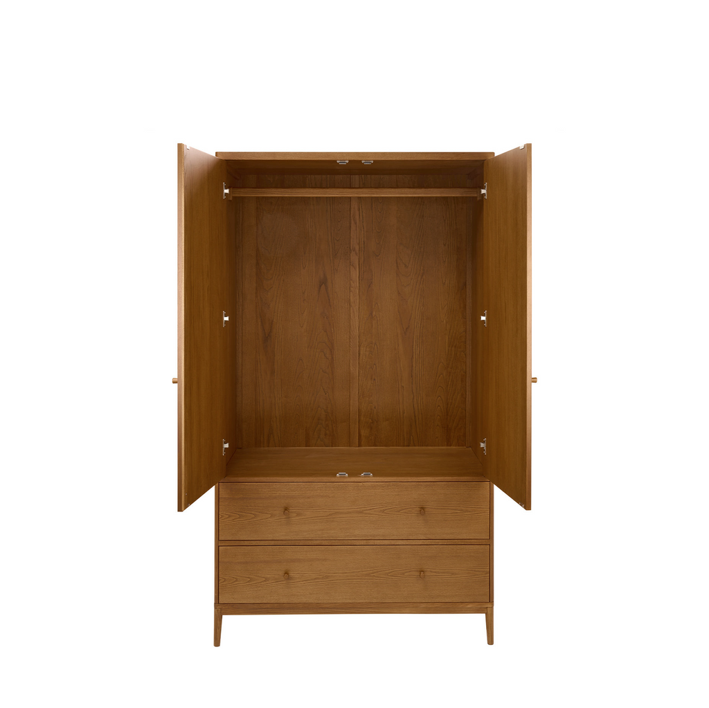 The contemporary Salina 2 door wardrobe offers substantial storage space with a sturdy wooden hanging rail and 2 generous drawers beneath the main storage. Available in a vintage finish, creating a very stylish look in any bedroom.