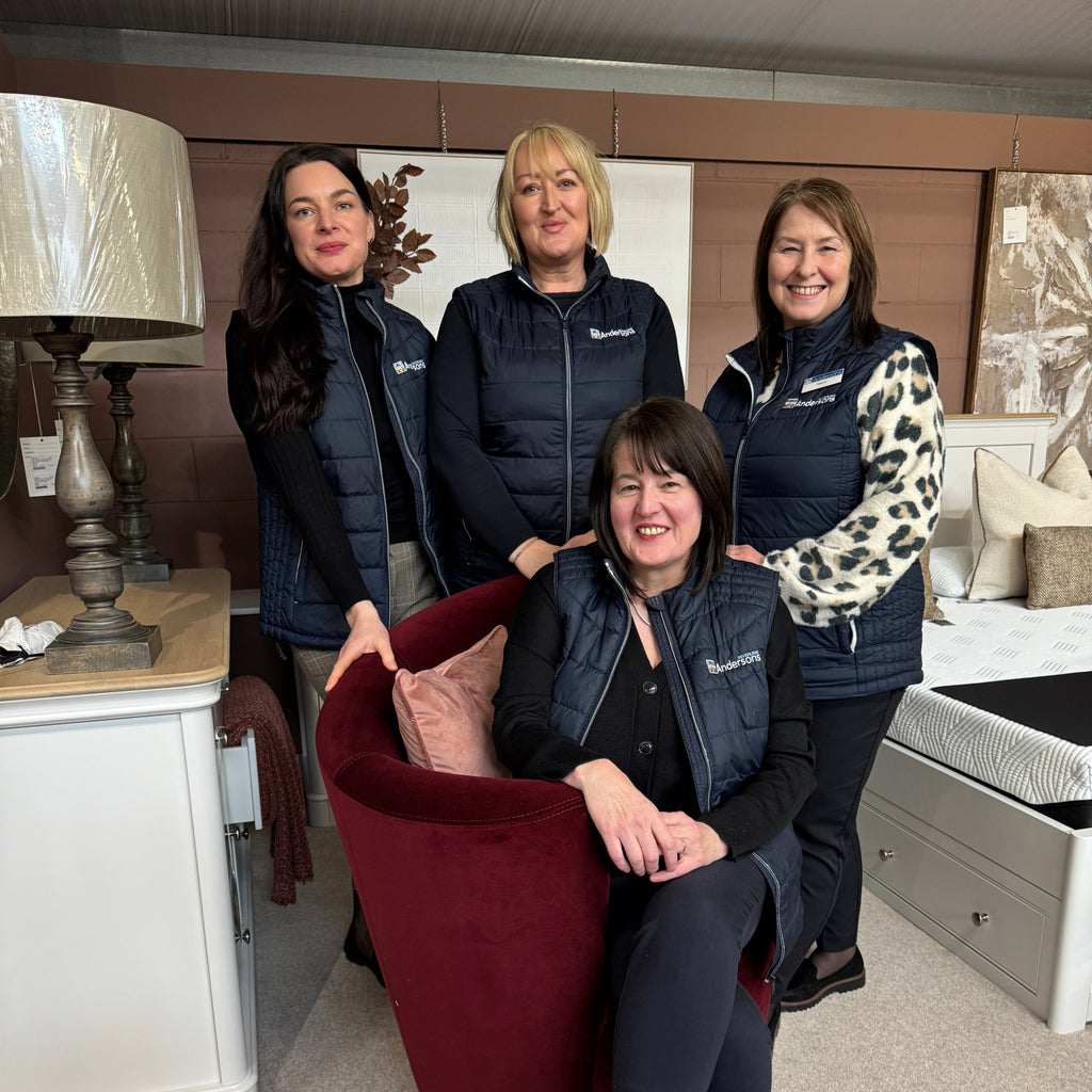 Our expert Bedroom Dept.Team are on hand to assist you in finding the perfect bed for you. With over 60 years of combined service at Andersons, Eva, Michelle, Valerie and Elaine have extensive knowledge to best help you find the best mattress or bedroom furniture for you.