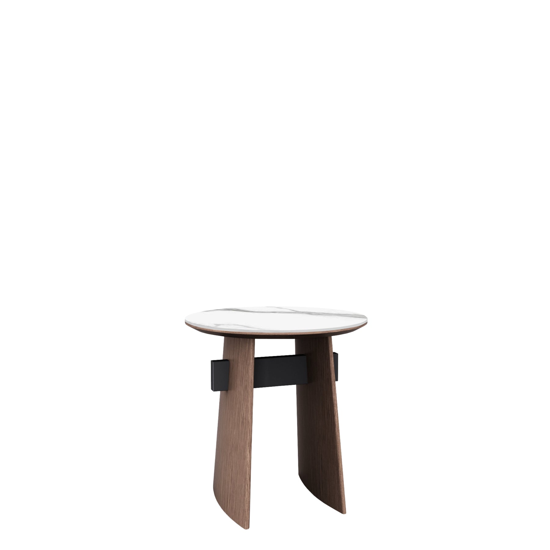 A contemporary styled dining and living room collection evoking timeless elegance, crafted in wood veneer with hardwearing white sintered stone tops on the sideboard and dining table option. A choice of two dining tables featuring black powder coated cross rails are complemented by the stylish dining armchair in grey featuring black powder coated metal legs for durability.