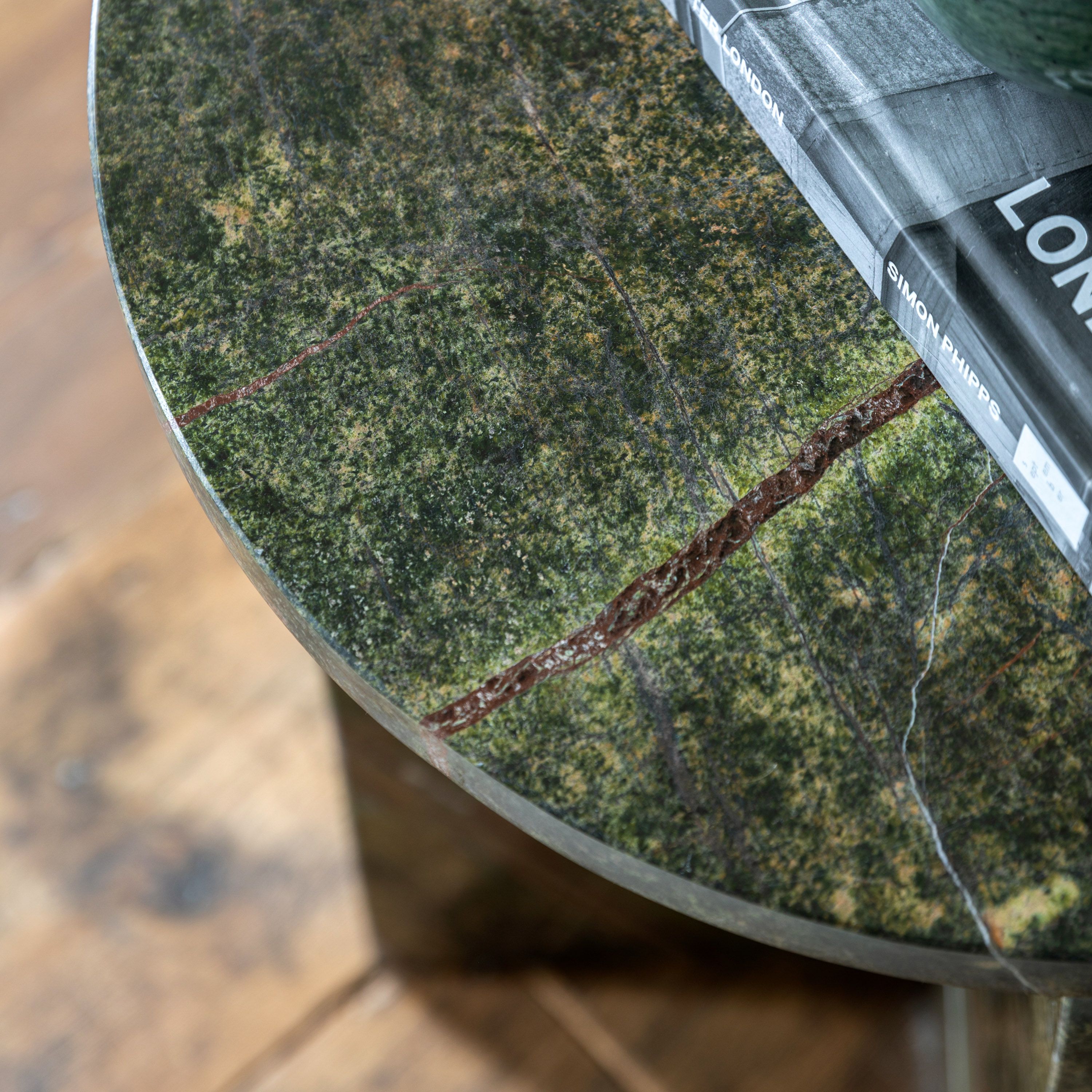 Add a touch of style to a room with this beautiful table, crafted from marble. The solid top and base show the natural pattern of the marble to great effect whilst the base features gently curved tops to create a stunning design feature.