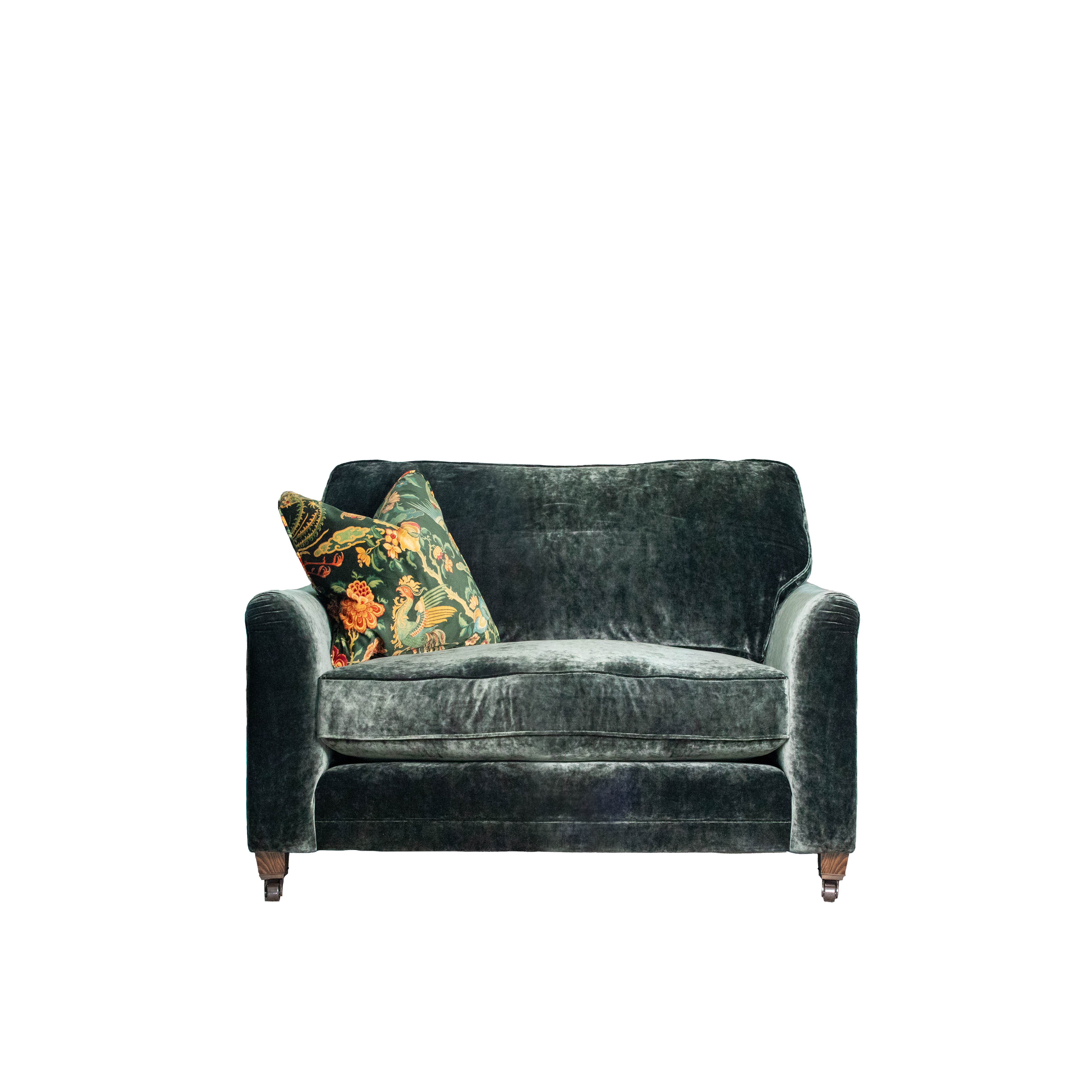 A contemporary addition to the Spink & Edgar Collection. Featuring feather filled seat and back cushions encasing a Spink & Edgar pocket sprung base. This collection features three sizes of sofas and a snuggler, and is available in any of the Spink & Edgar velvets with the option of a fabric mix on the outside arms.