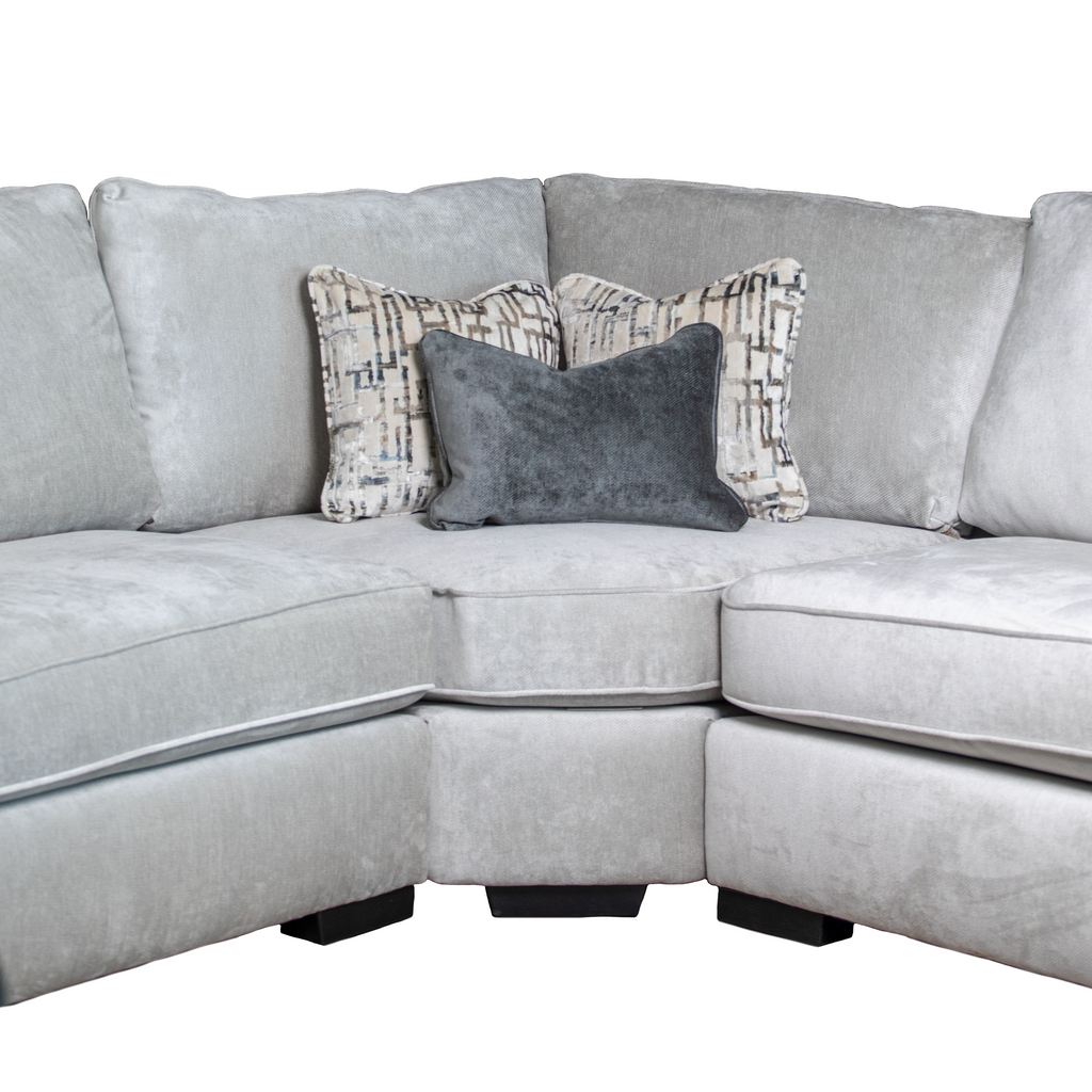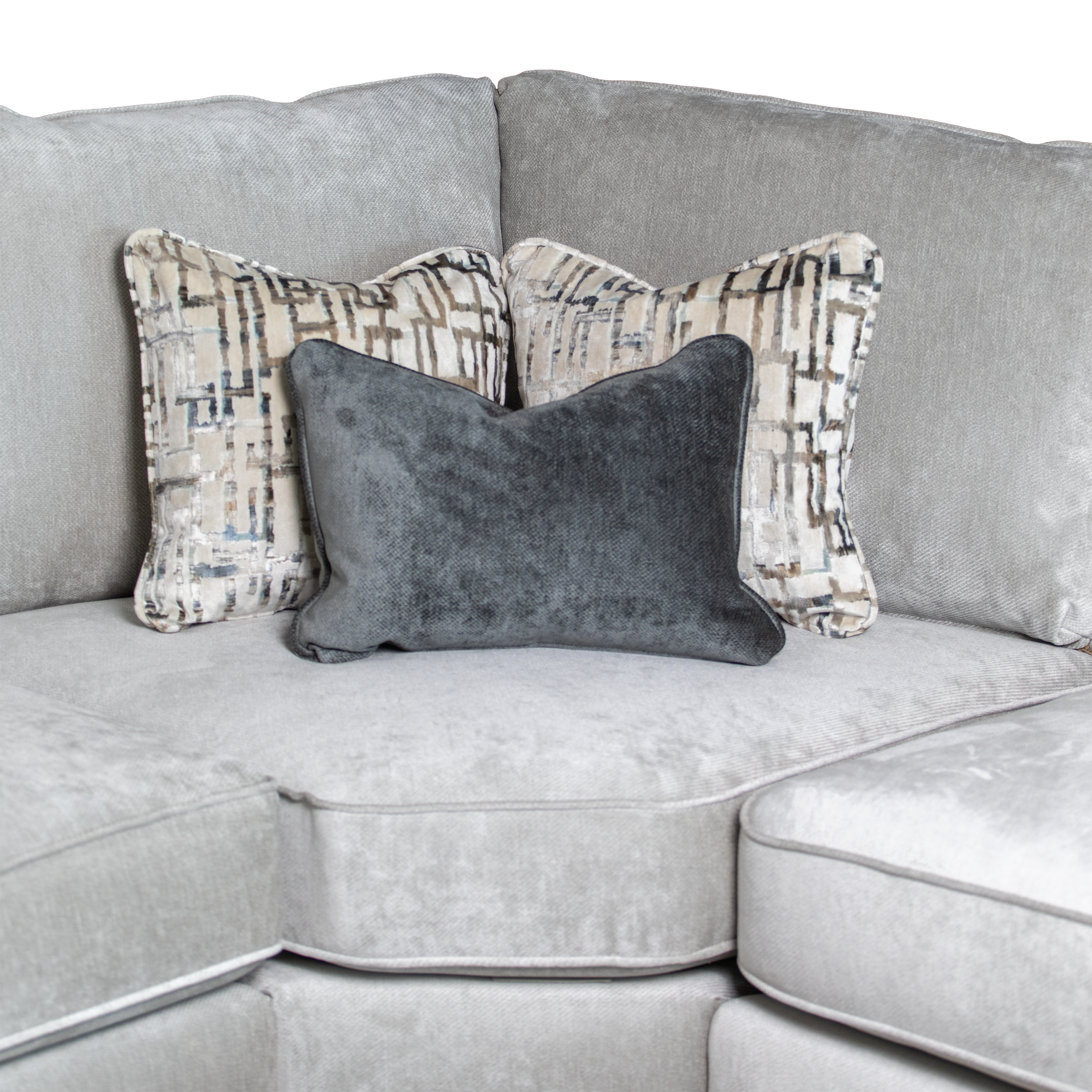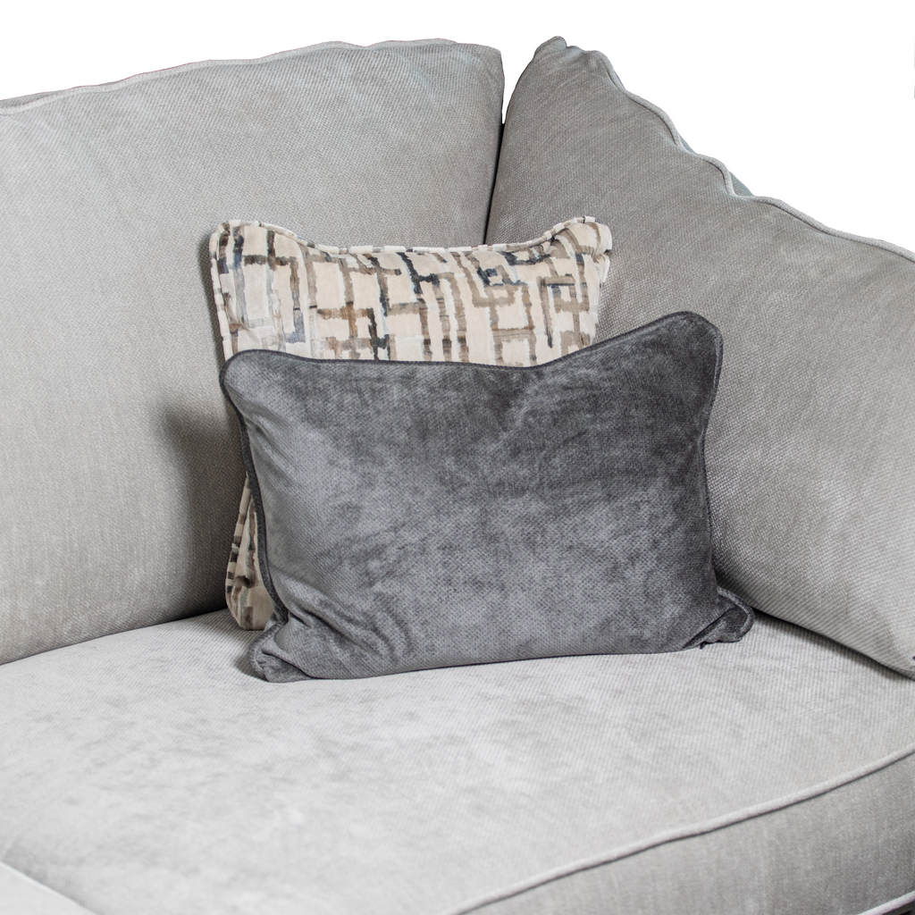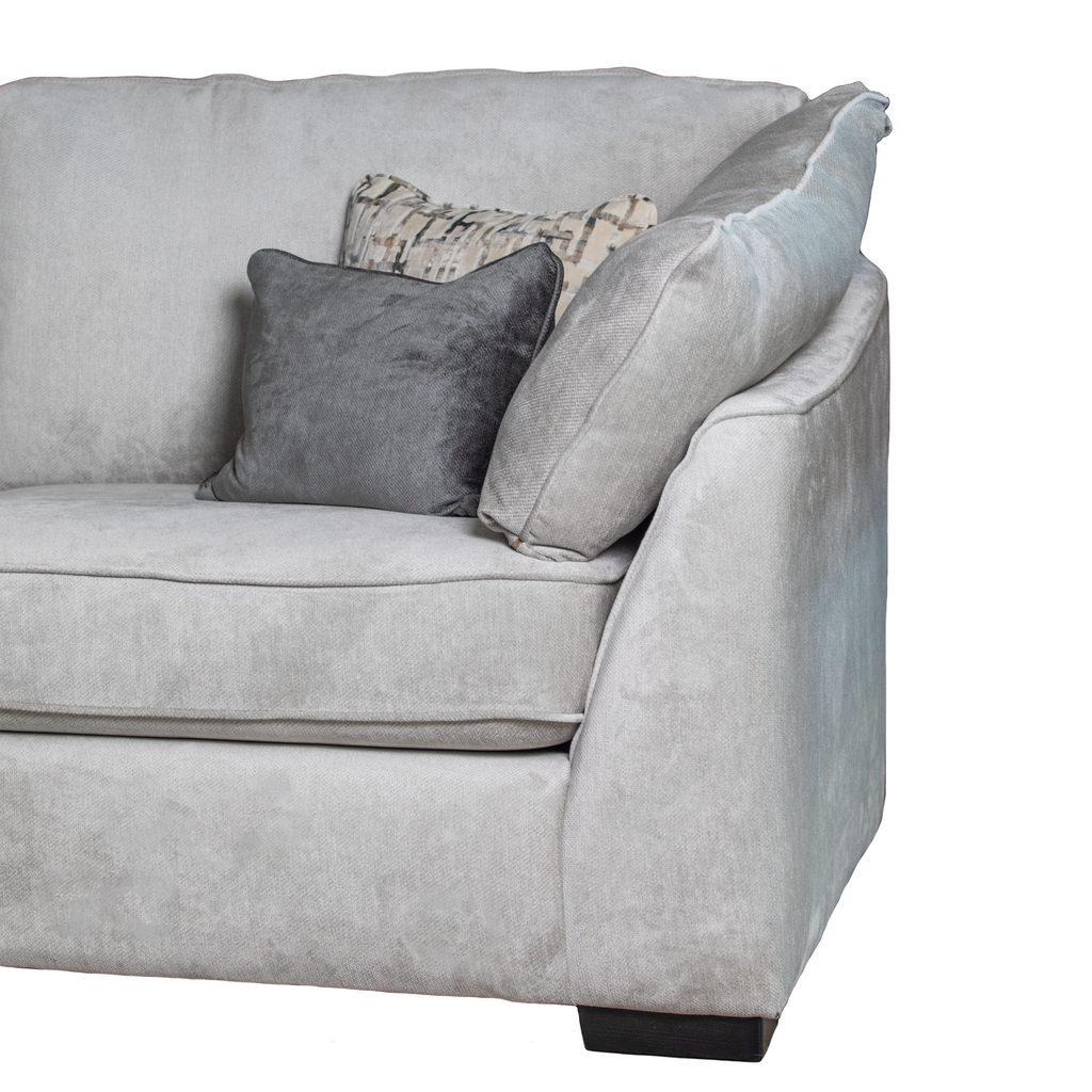 A stylish and contemporary suite, available in a fabulous selection of high-quality fabrics. The Halo can come as a modular corner group, allowing you to tailor the size of the furniture to your exact requirements. As such, very large corner configurations are achievable. One highly distinctive feature of the Halo range is the pair of soft and tall bolster cushions, resting upon each arm, providing exceptional comfort and the perfect backrest in the corner of the sofa or chair for when lying down with your feet up.