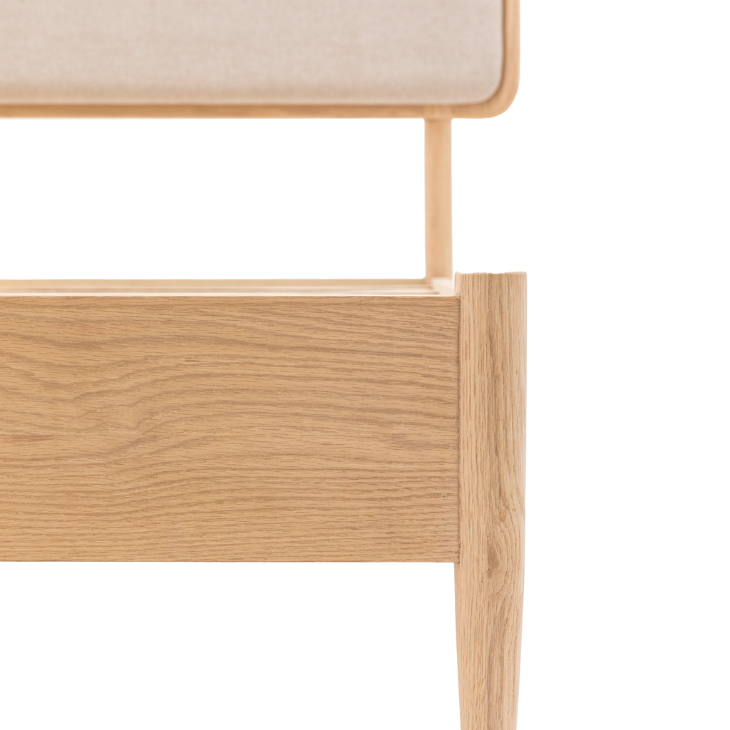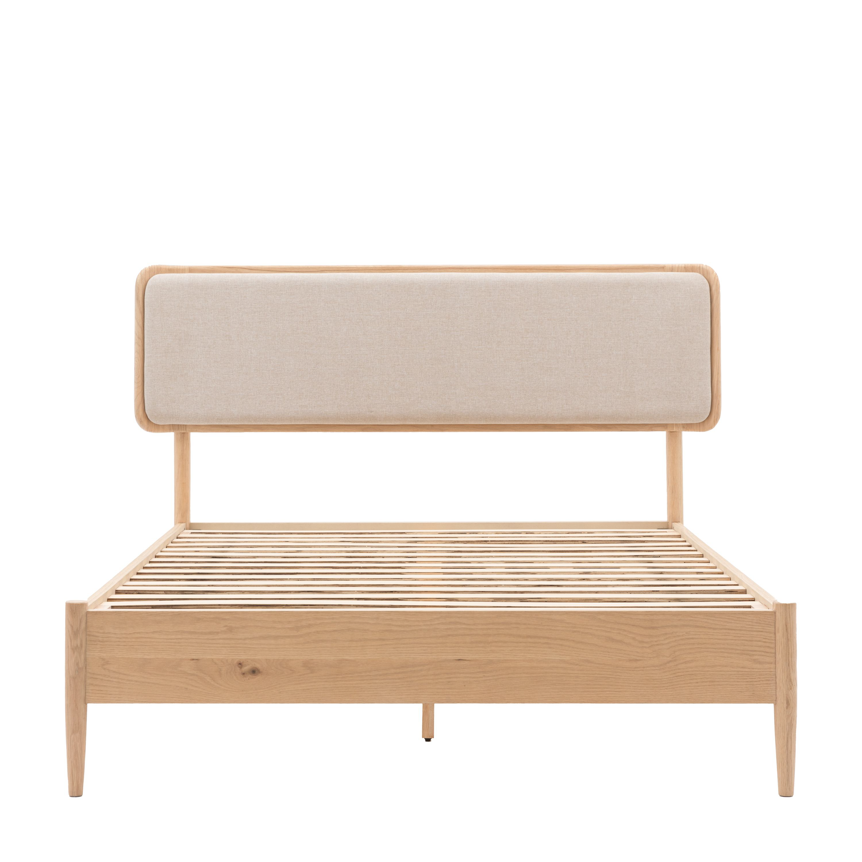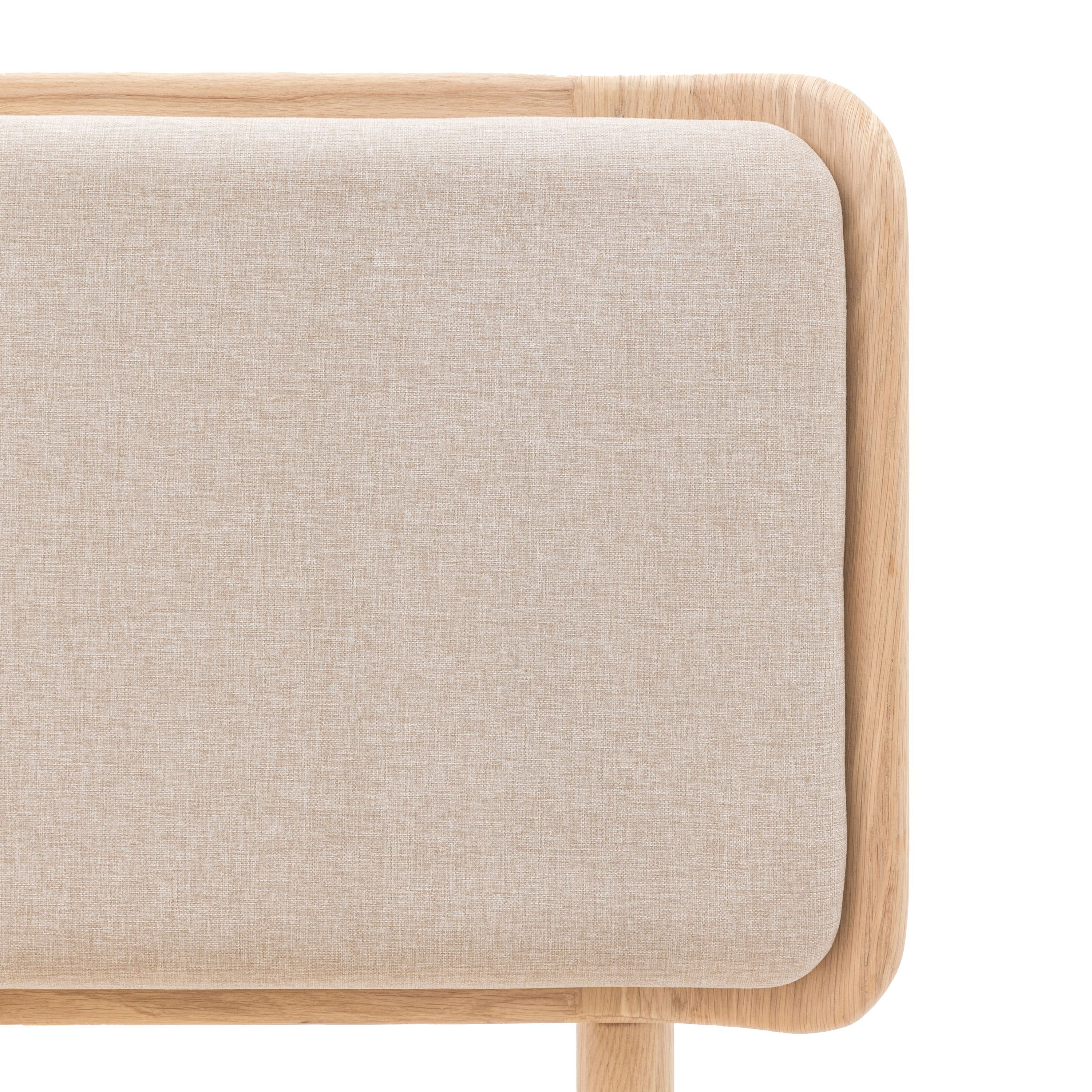 This bed is a comfortable and stylish addition to any bedroom. Its oak frame is both durable and aesthetically pleasing, with a contemporary neutral fabric that compliments the clean design. The natural finish complements a variety of interior styles.