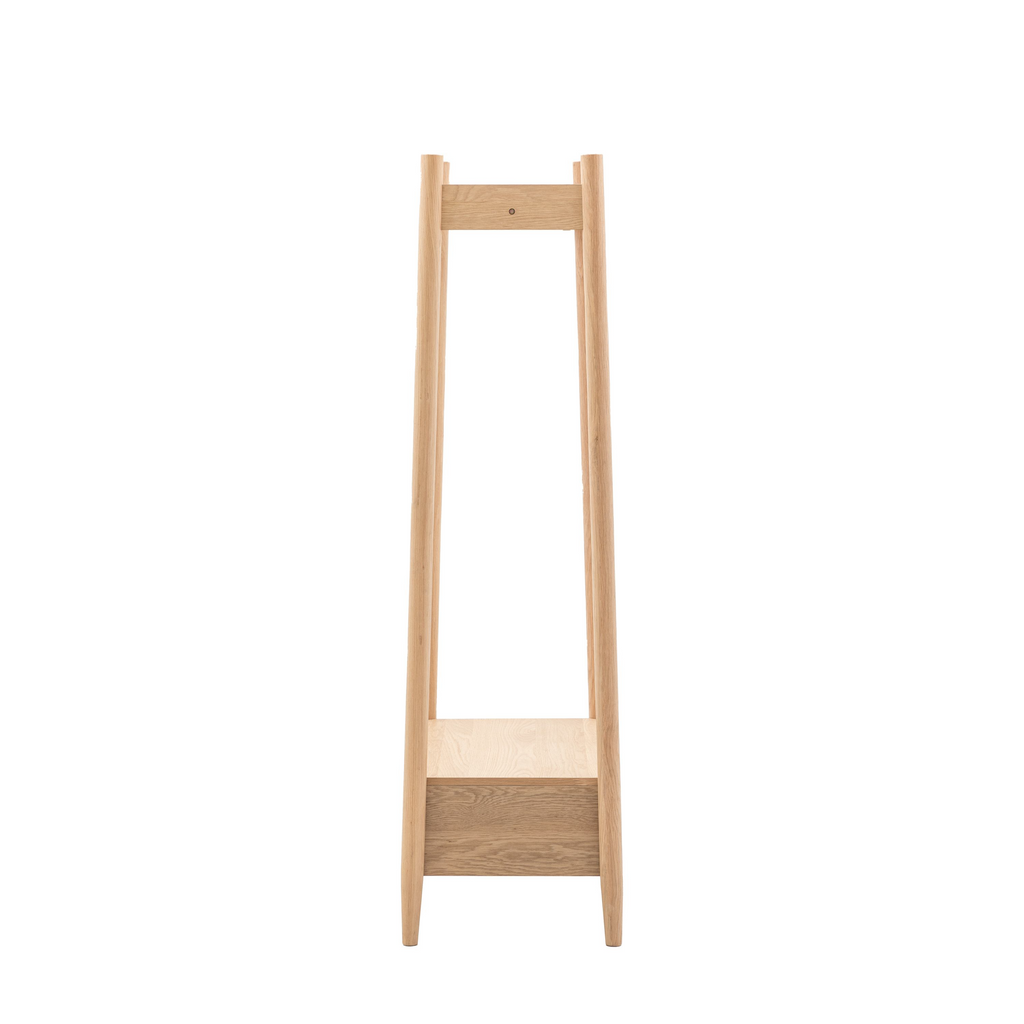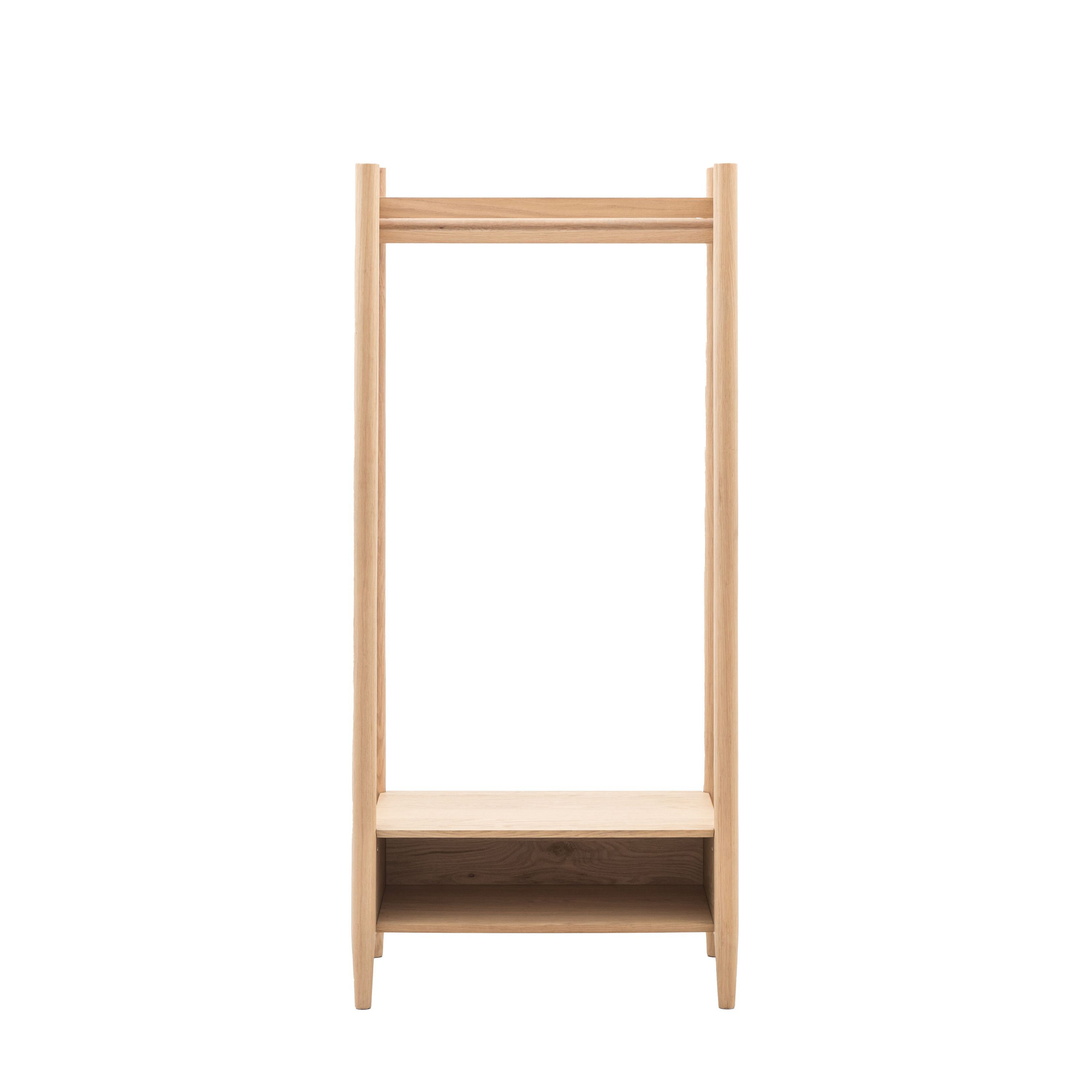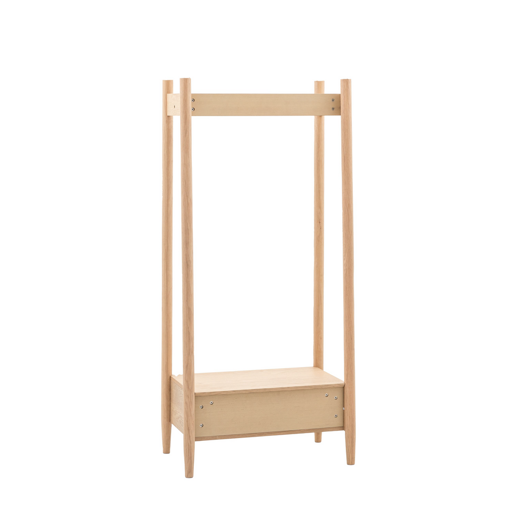 This open wardrobe is a stylish and functional addition to any bedroom. Its minimalist design and oak construction create a sleek and modern look. The sturdy frame and spacious shelf provide ample space for hanging coats, hats, and bags. Perfect for keeping any space tidy and organised.