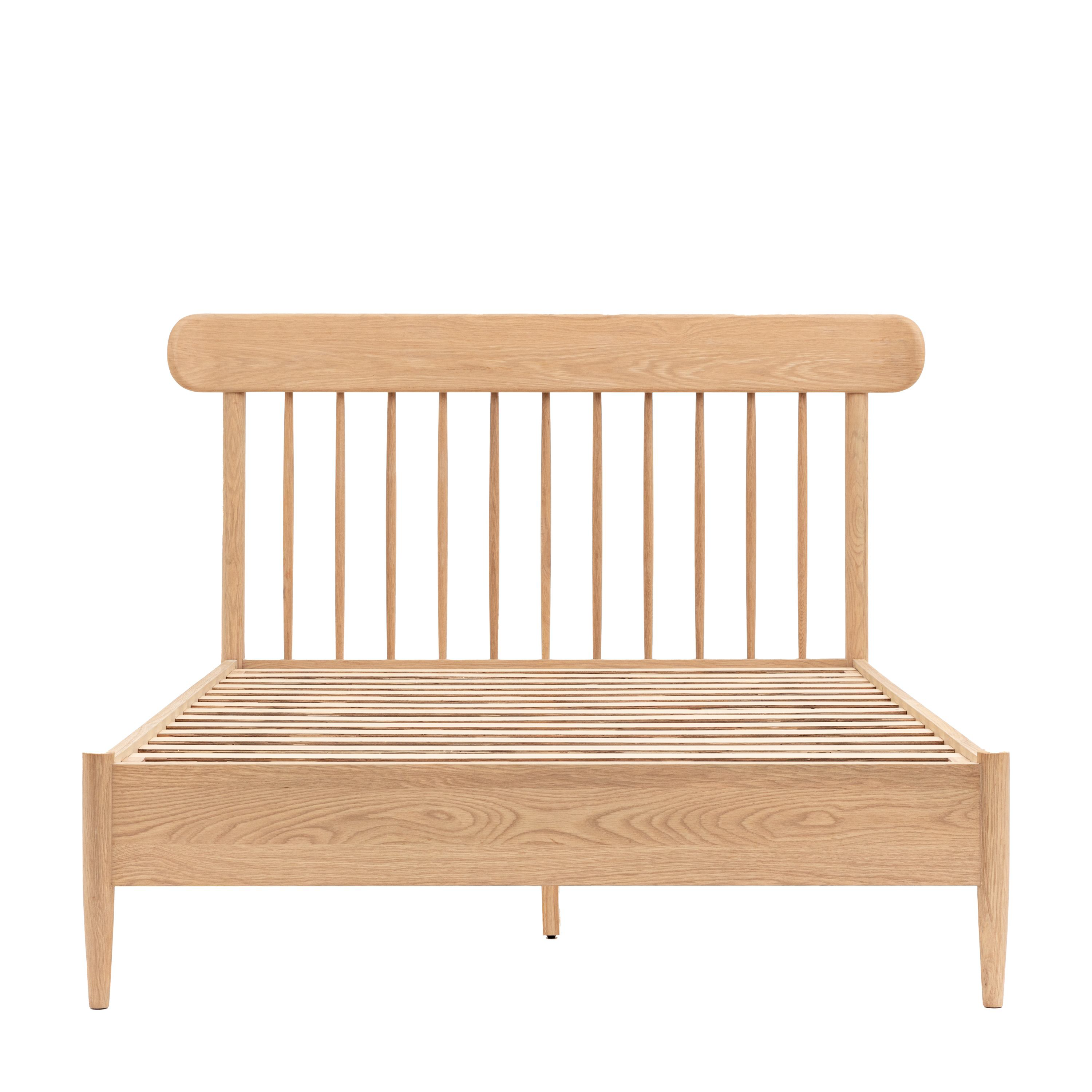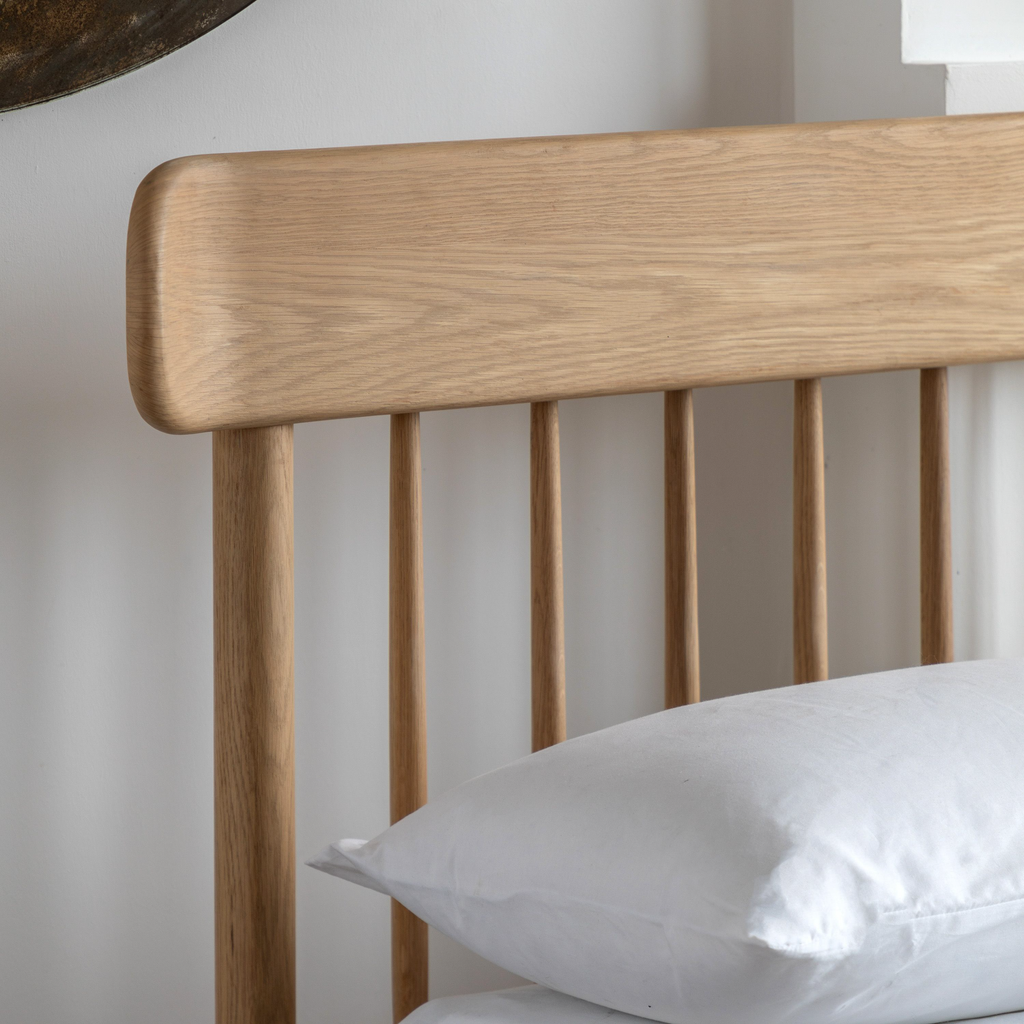 This charming bed features a classic spindle design that adds a touch of elegance to any bedroom. Its solid oak frame is both durable and aesthetically pleasing. The natural finish complements a variety of interior styles.