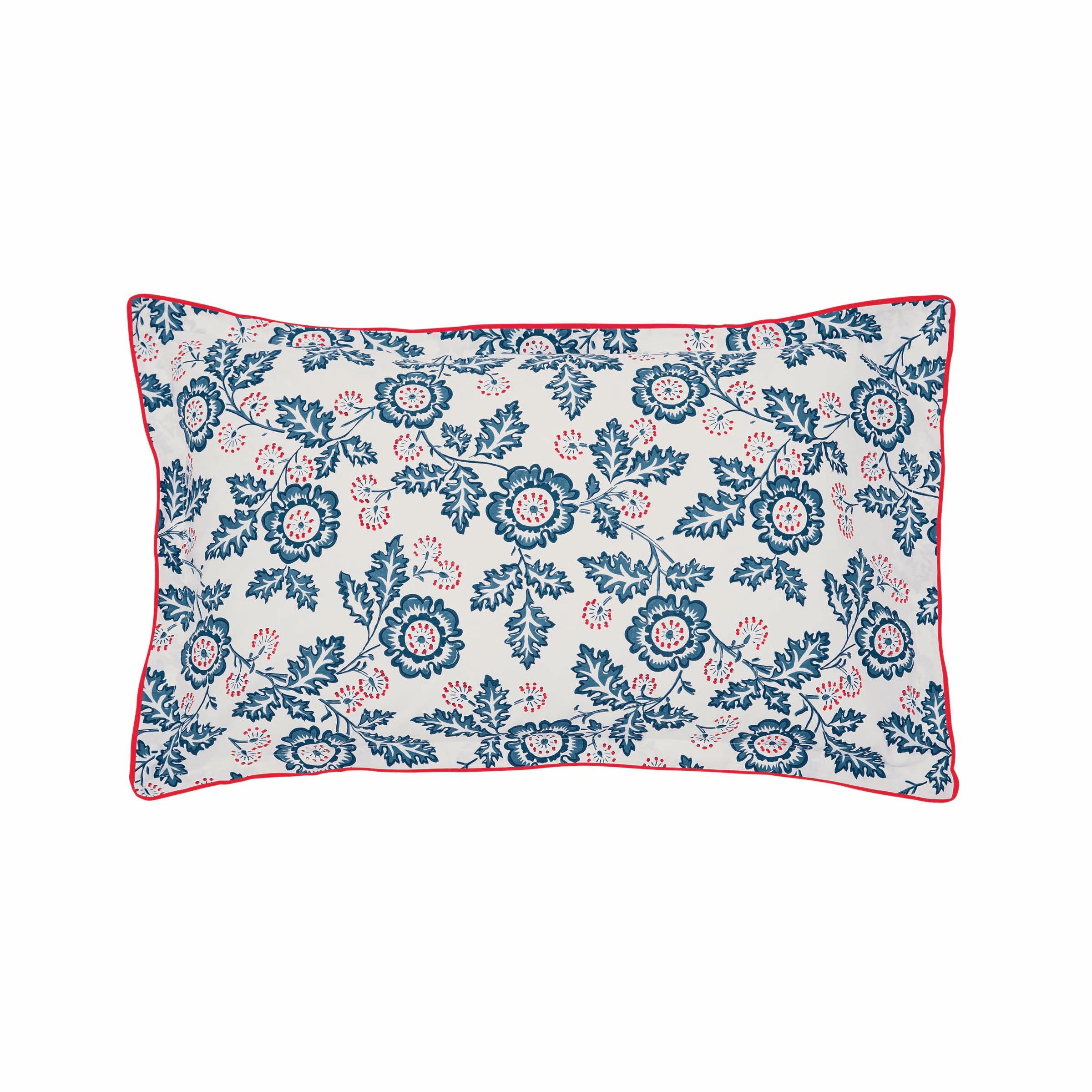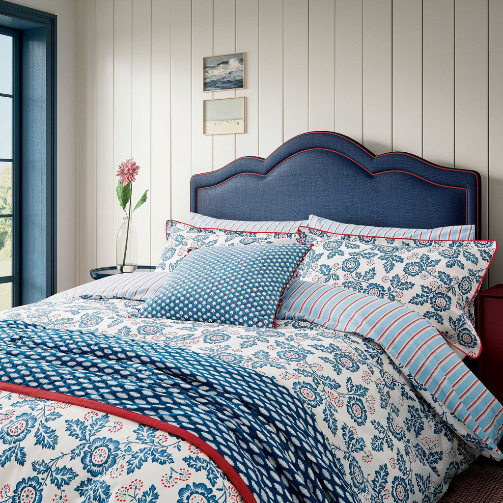 A beautifully fresh floral design in blue, white and red. With an all-over floral, branch design with an elegant stripe pattern to the reverse & standard pillowcase. 180 thread count, BCI cotton percale.