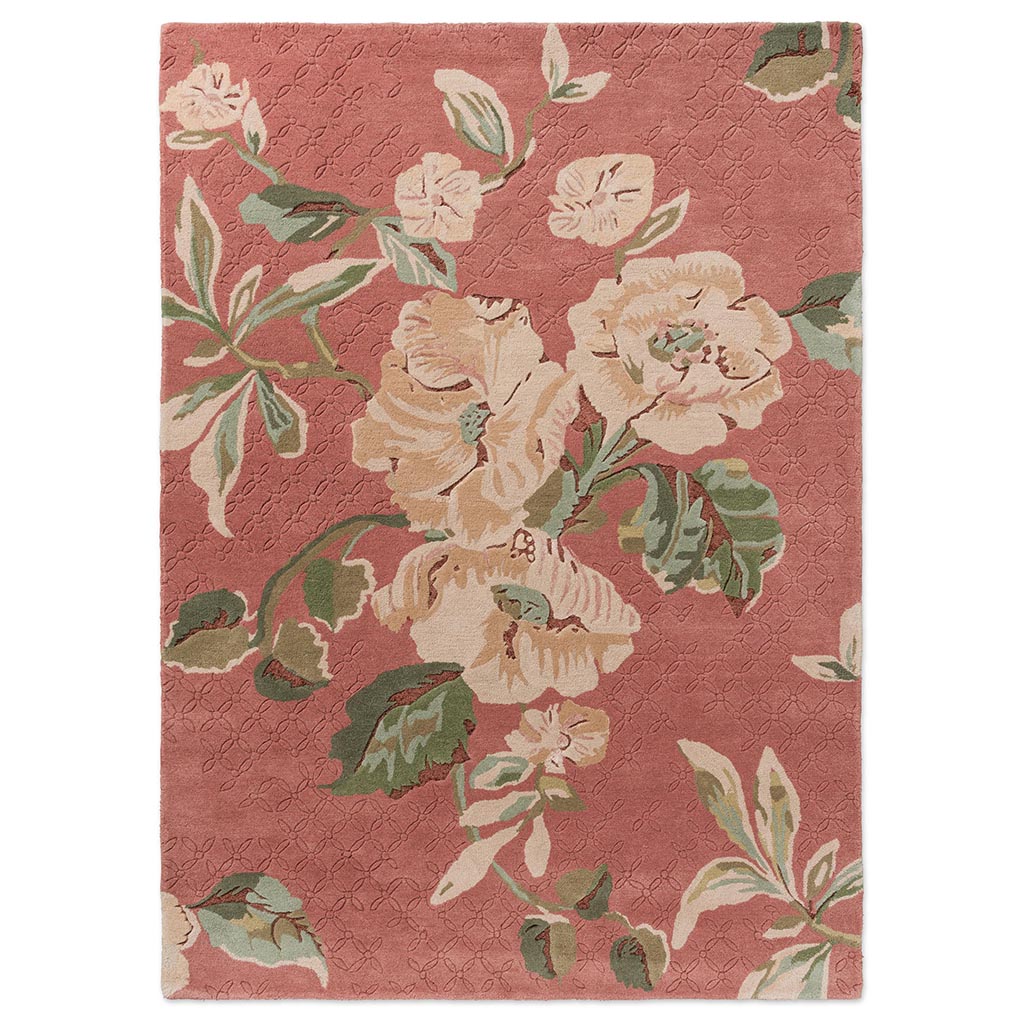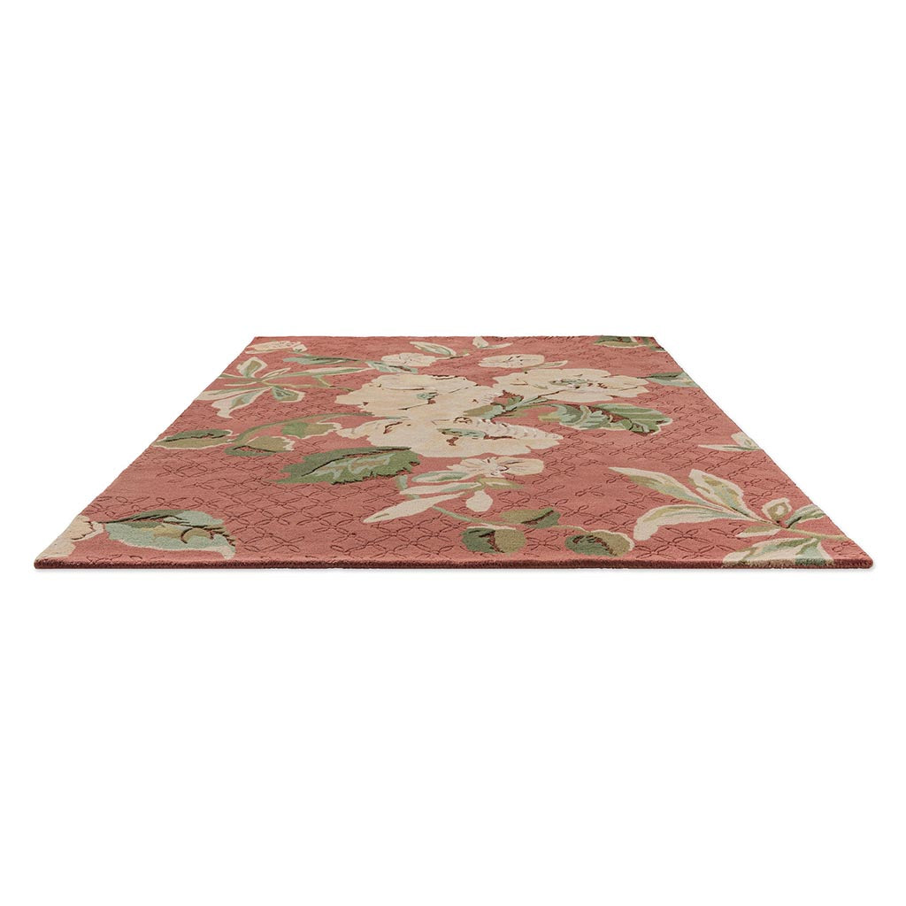 Reminiscent of warm summer days, the Aylworth Trail print features a painterly dense design with trailing hibiscus flowers amongst scrolling leaves. The majority is a New Zealand blended wool with small hints of viscose to add luxury and a nice lustre to this rug.