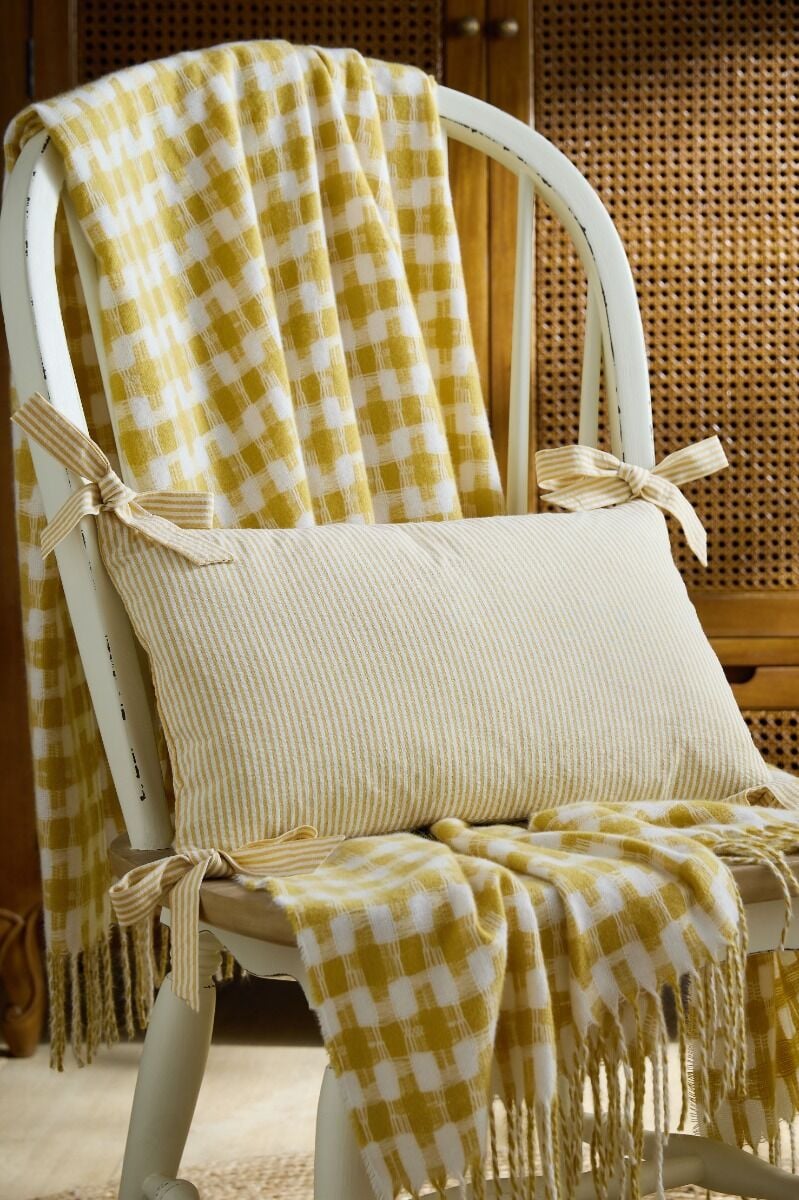 Add a touch of playfulness to your home with the new Laura Ashley Flaxley cushions. Featuring a classic pinstripe pattern, this cushion blends timeless design with playful elegance. Soft fabric and plush filling ensure cozy comfort, while the decorative bow ties offer a sweet, tailored finish that elevates any sofa, chair, or bed. Available in two charming shades, a blush pink and butter yellow. Filled with a luxury fine denier micro fibre “Feels like Feather” pad.