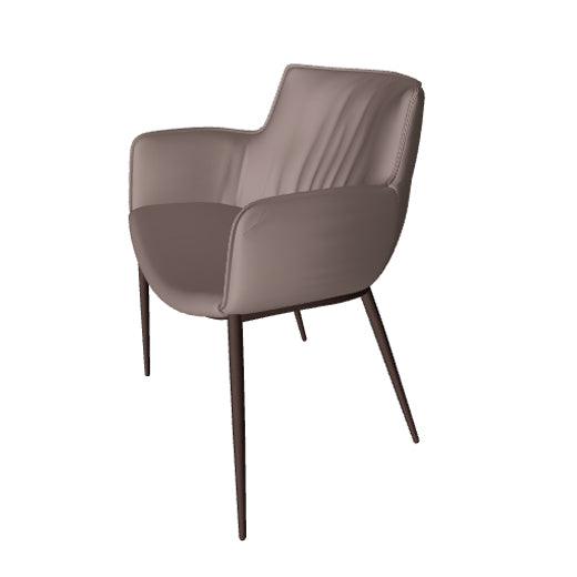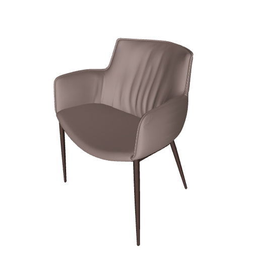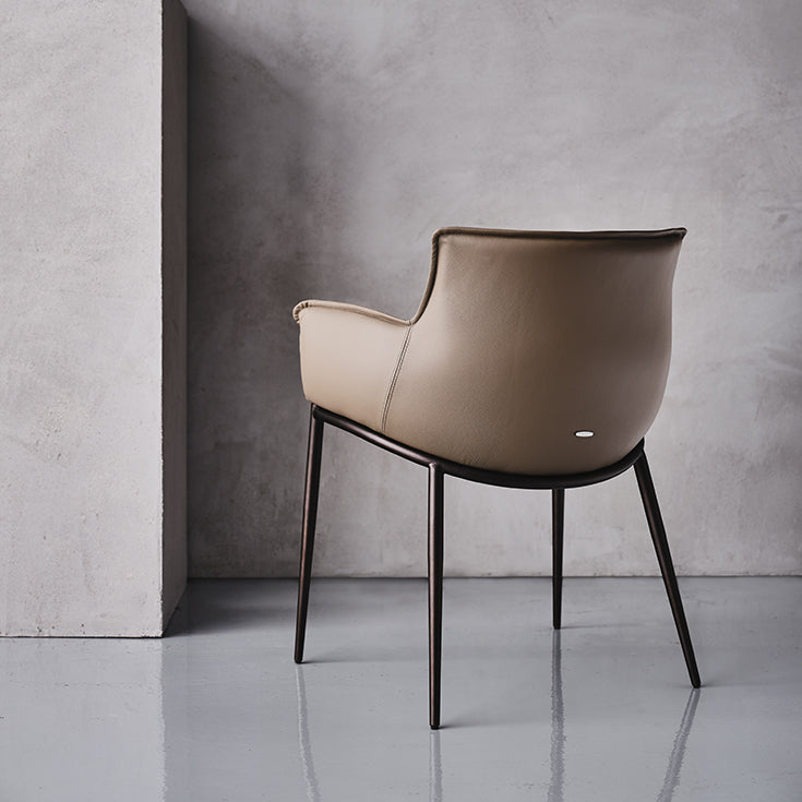 The rounded shapes in the Rhonda family of armchairs exude a natural elegance that makes them ideal for furnishing comfortable and welcoming designer dining rooms. The soft folds that decorate the inside of the backrest contrast with the stretched frame that wraps around the body. The Rhonda family provides the perfect combination of both elegance and practicality, and expressiveness and discretion.