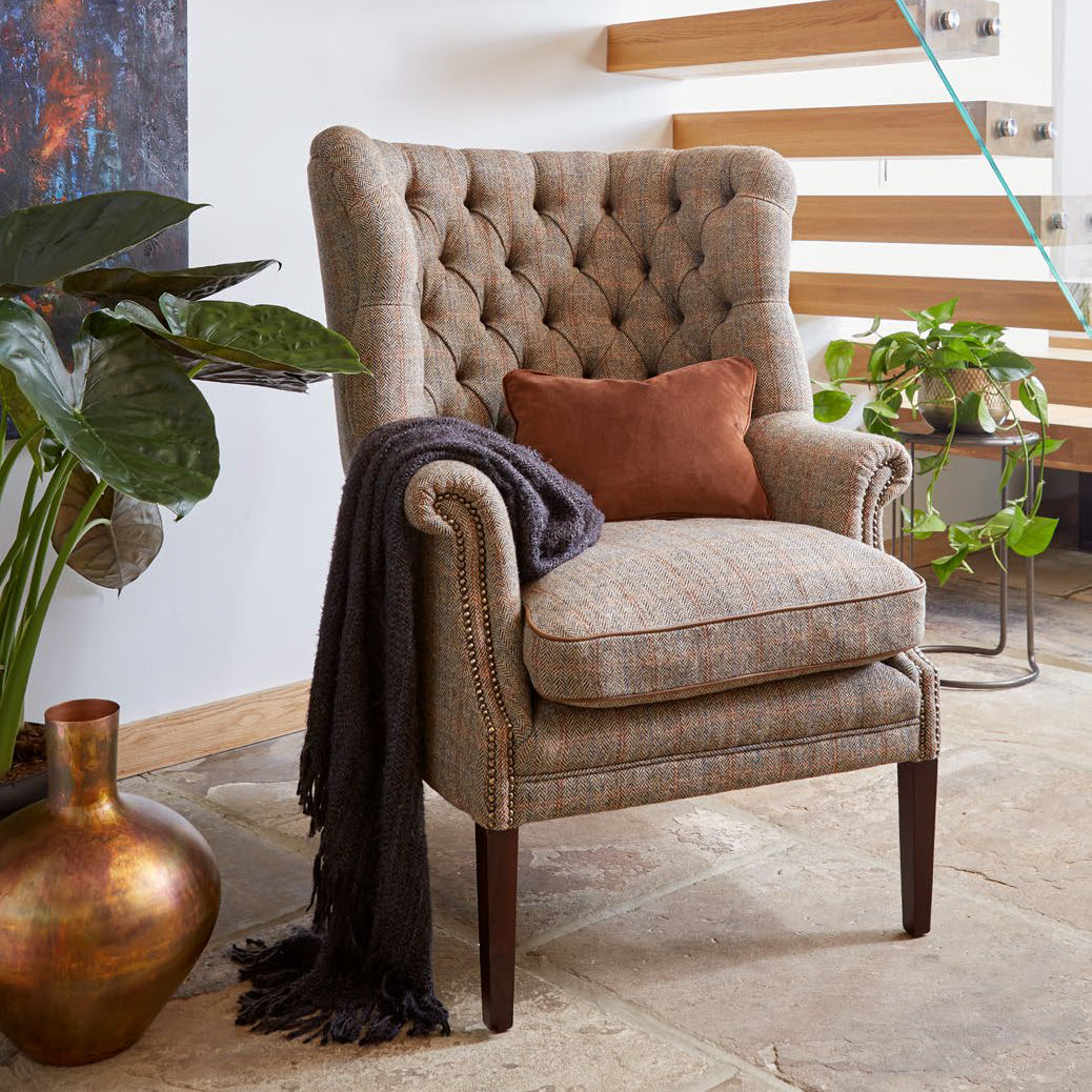 With wrap-around wings and a high back, the classic design gives unwavering support and the feather cushion with pocket sprung seat means you can sit in comfort for hours.