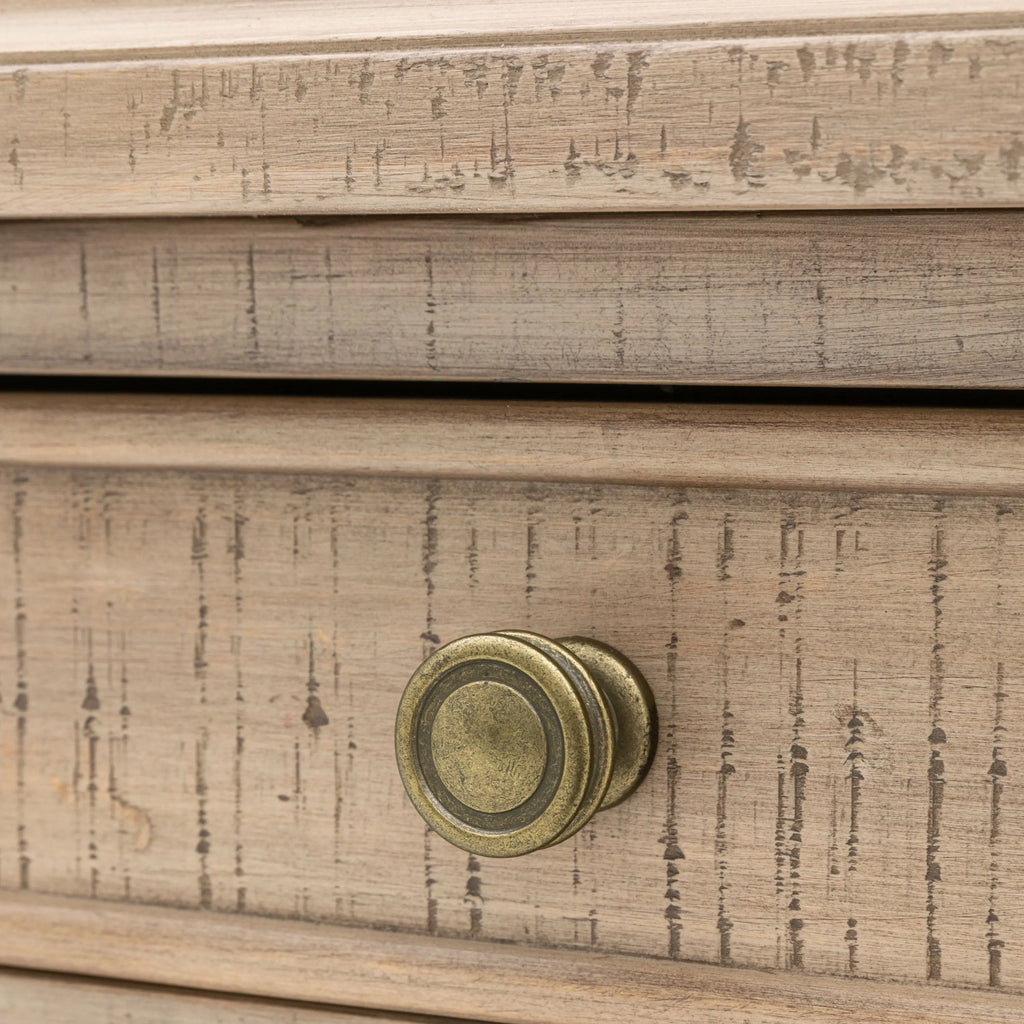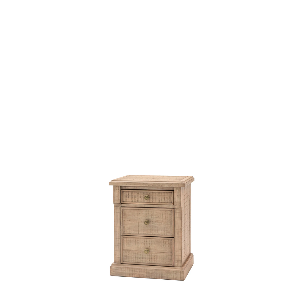 This 3 drawer bedside is a charming and practical addition to any bedroom. Its weathered wood finish and simple design create a warm and inviting atmosphere. The three drawers provide ample storage space for books, glasses, and other bedside essentials. Perfect for adding a touch of rustic charm to your space.
