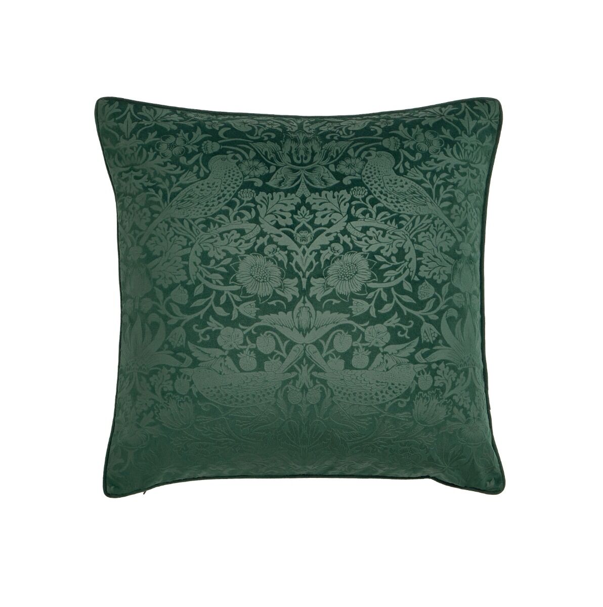 William Morris at Home Strawberry Thief Embossed Forest Cushion